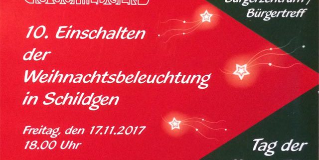 Anleuchten – hier trifft man sich! Am Freitag, den 17.November lädt die Interessengemeinschaft Schildgen um 18 Uhr ein zum mittlerweile 10. Einschalten der Weihnachtsbeleuchtung in Schildgen (auf dem Parkplatz von Fa. Broich / Uhren-Schmuck-Optik an der Altenberger-Dom-Str.).